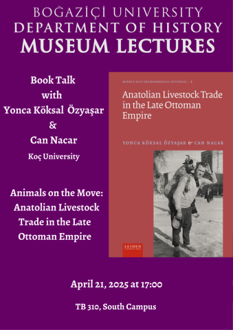You are cordially invited to the upcoming Museum Lecture by Yonca Köksal Özyaşar and Can Nacar titled "Animals on the Move: Anatolian Livestock Trade in the Late Ottoman Empire." Please find attached the announcement poster.