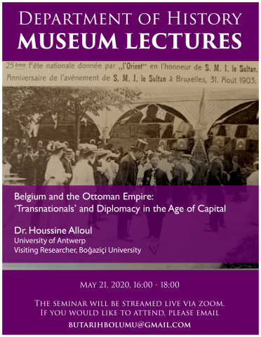 On the eve of the First World War an intricate complex of investments worth millions of francs and spanning railways, mines, public utilities, and the Ottoman sovereign debt connected the Kingdom of Belgium to the Ottoman Empire. Tracing this formidable, yet almost entirely forgotten, political, economic and social entanglement back to the start of Belgian mass-industrialization in the 1830s, and switching back and forth between Brussels and Istanbul, my talk seeks to uncover the complex sets of shifting transnational class alliances – between high officials, Palace dignitaries, MPs, diplomats, engineers, bankers, and entrepreneurs – that lay behind it. Amplifying why such intricate webs of interpersonal relationships have remained obscured in the international history literature on interactions between the Ottoman Empire and Western Europe, I firmly place the Ottomans, small nations, and capital onto the forefront of the analysis, demonstrating how states interacted with each other through ‘real’ (often unofficial) people and private interests, and how the discursive barriers between the official and unofficial, the public and the private, and the so-called West and non-West were always in flux. My research draws on both printed and handwritten sources from state and private archives in Belgium and Turkey.
