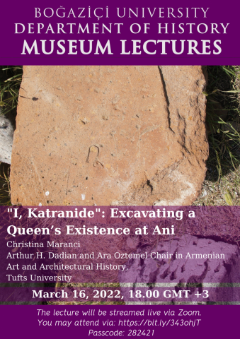 Department of History cordially invites you to the upcoming Museum Lecture titled "I, Katranide: Excavating a Queen's Existence at Ani" by Christina Maranci.