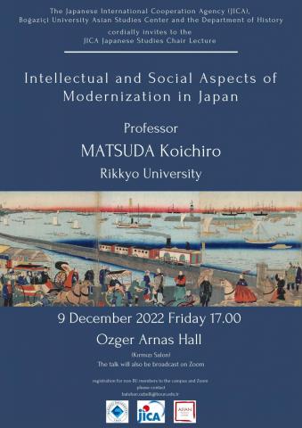 The Japanese International Cooperation Agency (JICA), Boğaziçi University Asian Studies Center, and the Department of History cordially invite to the JICA Japanese Studies Chair Lecture titled "Intellectual and Social Aspects of Modernization in Japan" by Prof MATSUDA Koichiro from Rikkyo University.