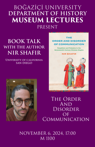 You are cordially invited to the book talk by Nir Shafir on his recently published book titled "The Order and Disorder of Communication: Pamphlets and Polemics in the Seventeenth-Century Ottoman Empire". The talk is scheduled to take place on November 6, 2024 at 17:00 in M 1100.