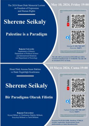 Boğaziçi University Departments of History, Political Science and International Relations, and Sociology cordially invite you to the 2024 Hrant Dink Memorial Lecture. The talk, entitled 'Palestine is a Paradigm' will be delivered by Sherene Seikaly on Friday, May 10, 2024 at 19:00 (Istanbul time).