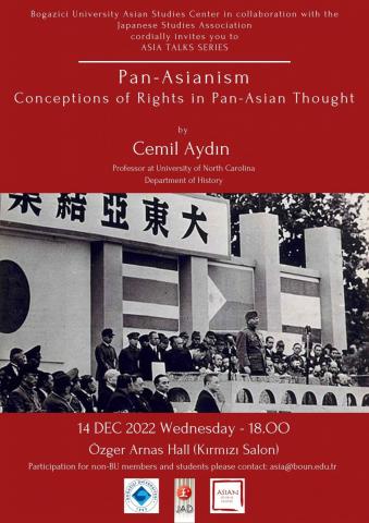 The Boğaziçi University Asian Studies Center, in collaboration with the Japanese Studies Association, cordially invites to the Asia Talks Series titled "Pan-Asianism: Conceptions of Rights in Pan-Asian Thought" by Prof Cemil Aydin from the University of North Carolina.