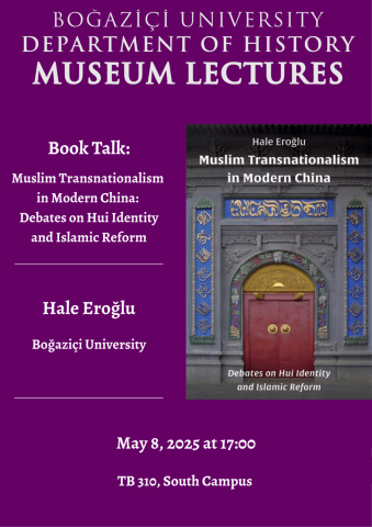 You are cordially invited to the upcoming Museum Lecture by Hale Eroğlu, titled "Book Talk: Muslim Transnationalism in Modern China: Debates on Hui Identity and Islamic Reform." The lecture will be held on May 8, 2025, at 5:00 PM in TB 310, South Campus.