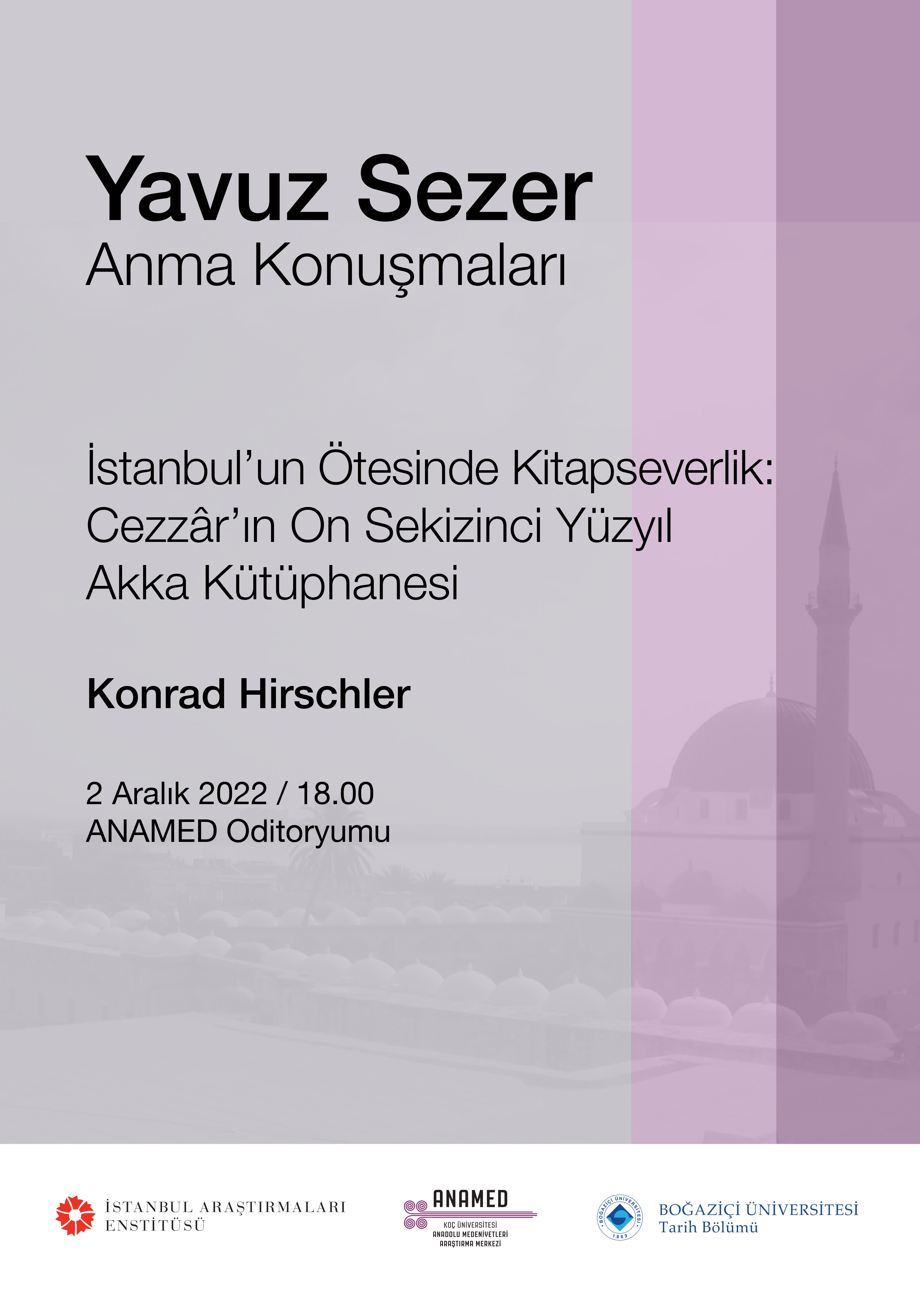 Bu yılki Yavuz Sezer Anma Konuşması 2 Aralık 2022 tarihinde 18.00'da ANAMED Oditoryumu'nda gerçekleşecektir.